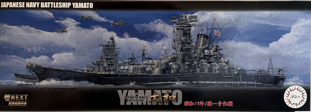 Fujimi Warship Next series #009 Imperial Japanese Navy battleship Yamato. This full hull or waterline configuration kit depicts the Yamato as she appeared in 1944 during the Battle of Leyte Gulf